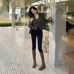 女小脚铅笔裤 深色高腰显瘦加绒加厚牛仔裤 紧身九分冬季 特价