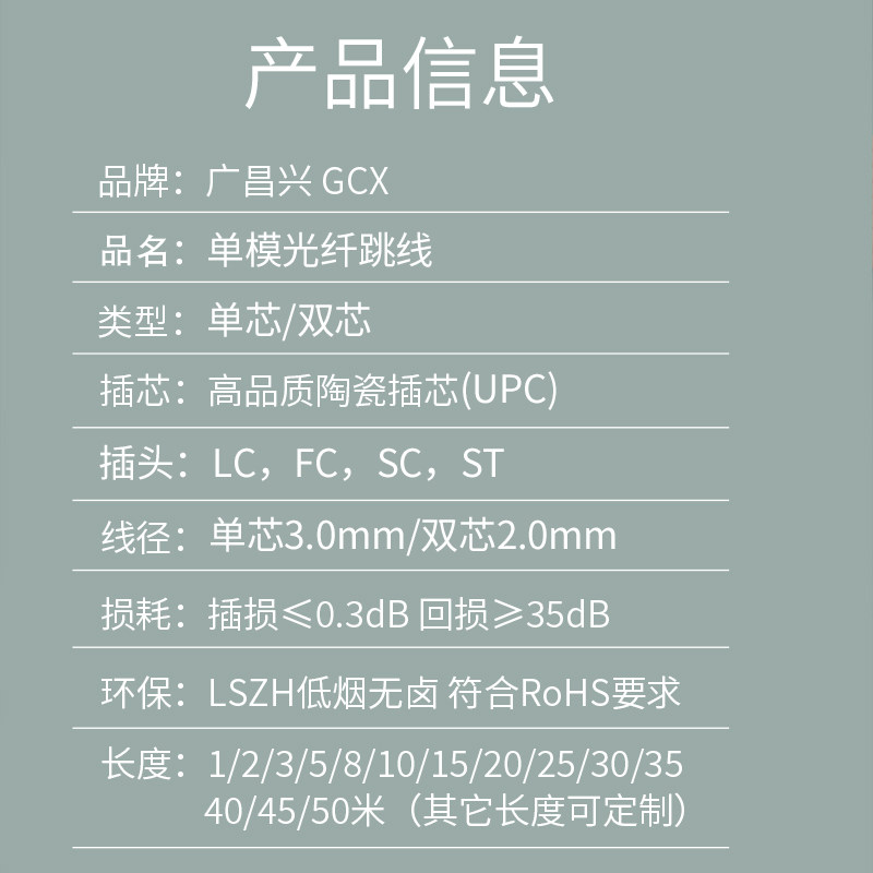 fc转st 大方口转小方口单双芯LSZH低烟无卤收发器光模块光端机转接线 电信级单模光纤跳线lc 广昌兴