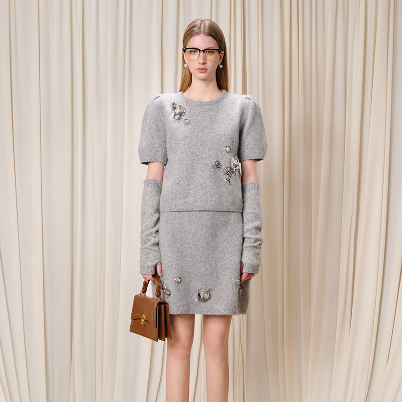 含羊毛圆领上衣半裙时尚 EIMISMOSOL新款 套装 孙乐言同款