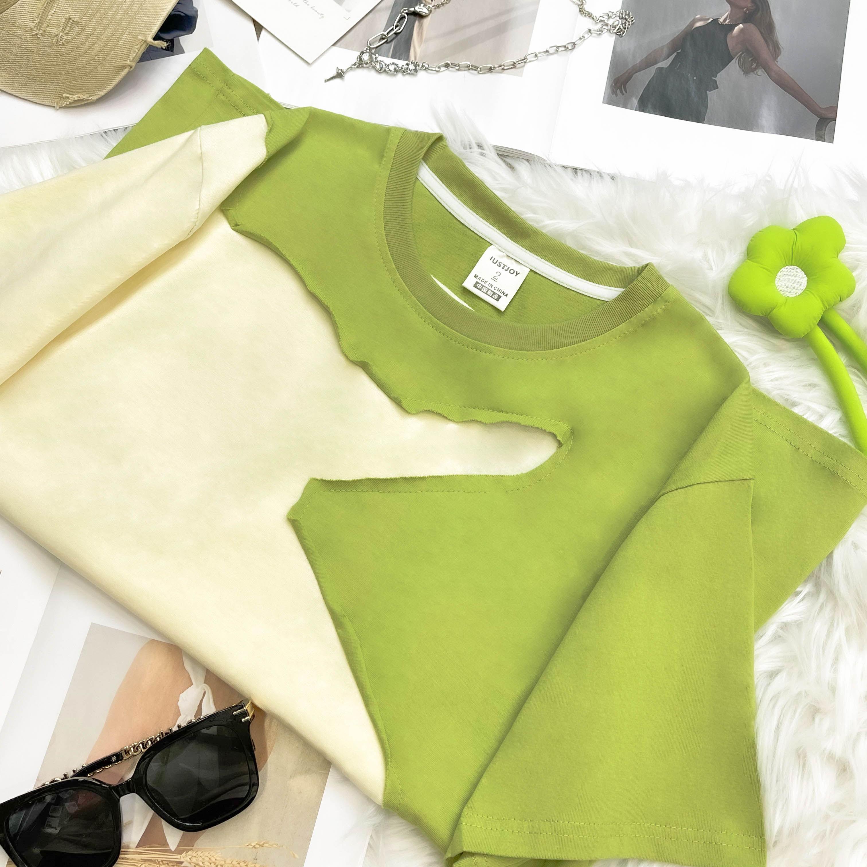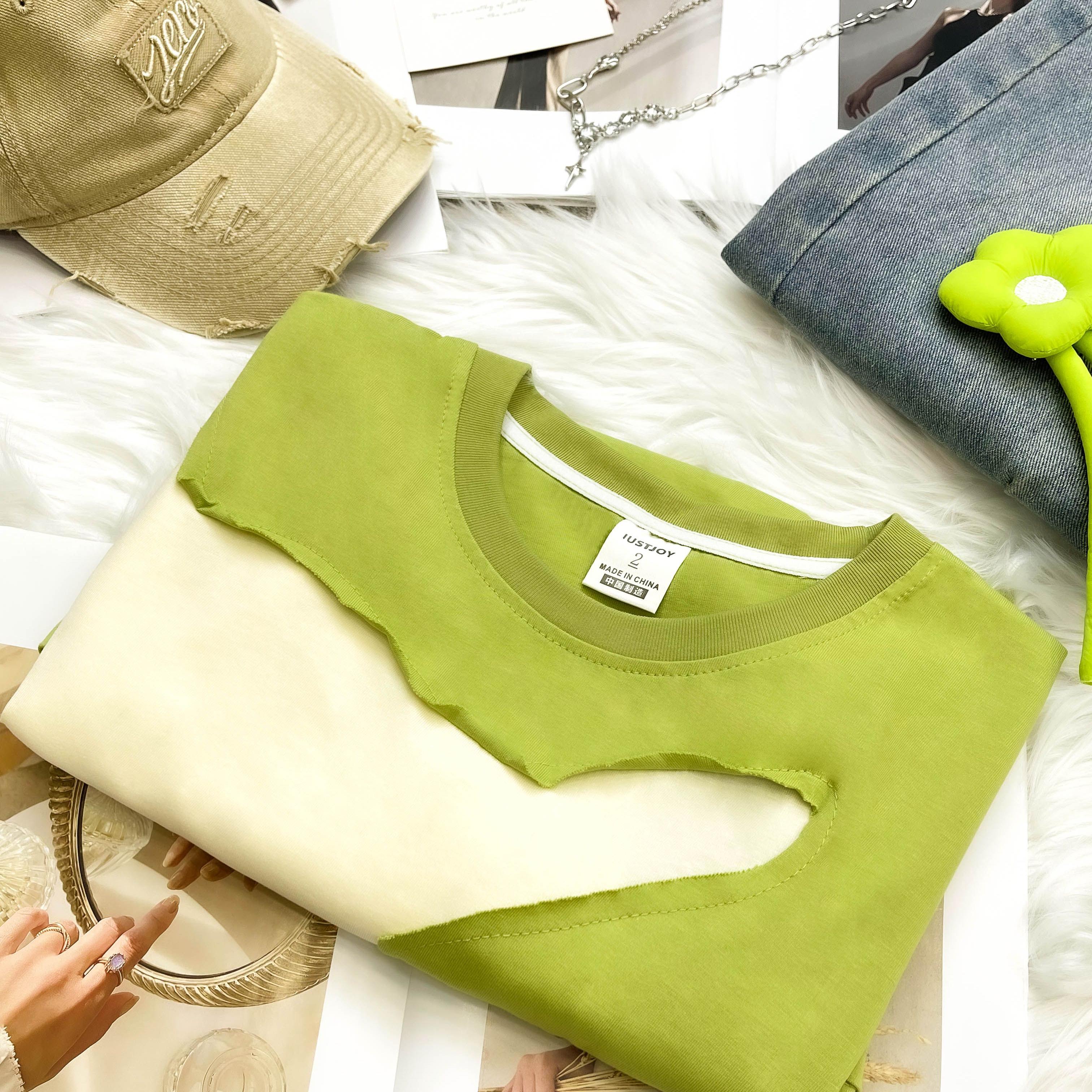 原创21支210g精梳纯棉美式 T恤休闲上衣潮 复古拼接小众设计感短袖