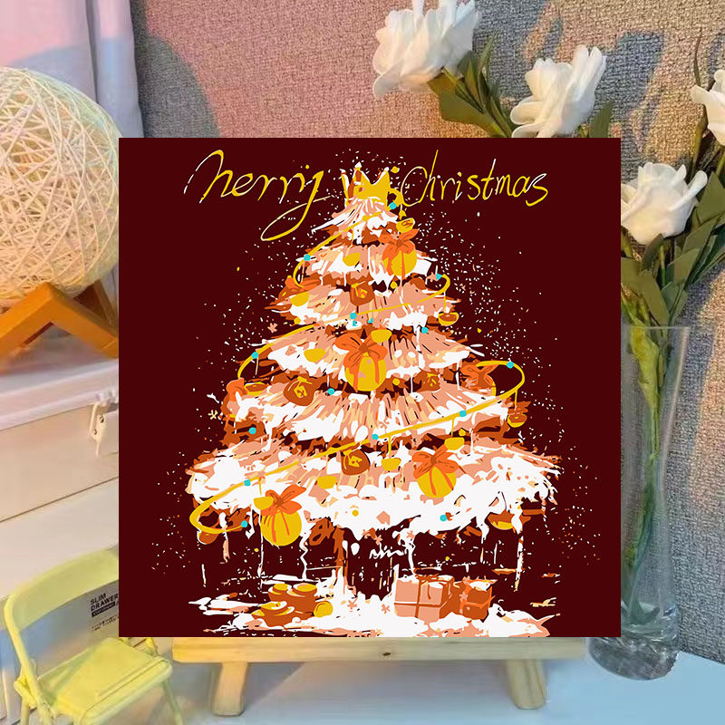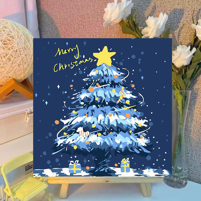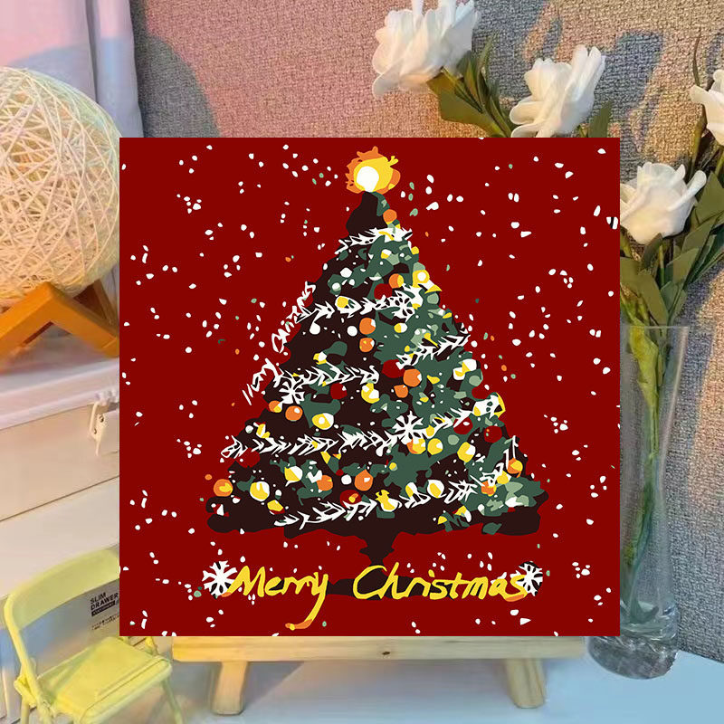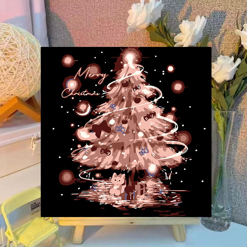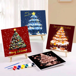 圣诞节diy数字油画充填油彩卡通动漫圣诞树涂鸦丙烯治愈装 饰画
