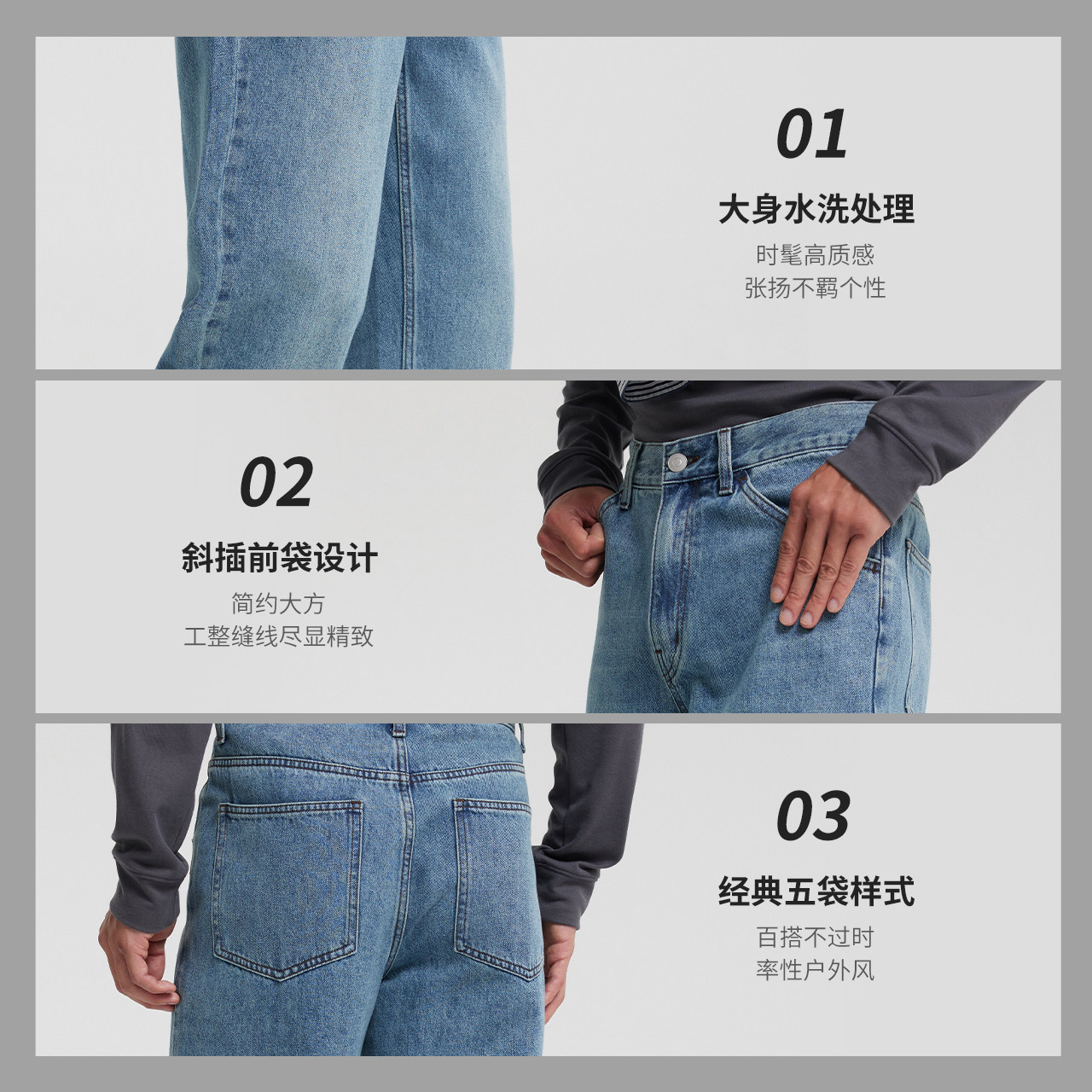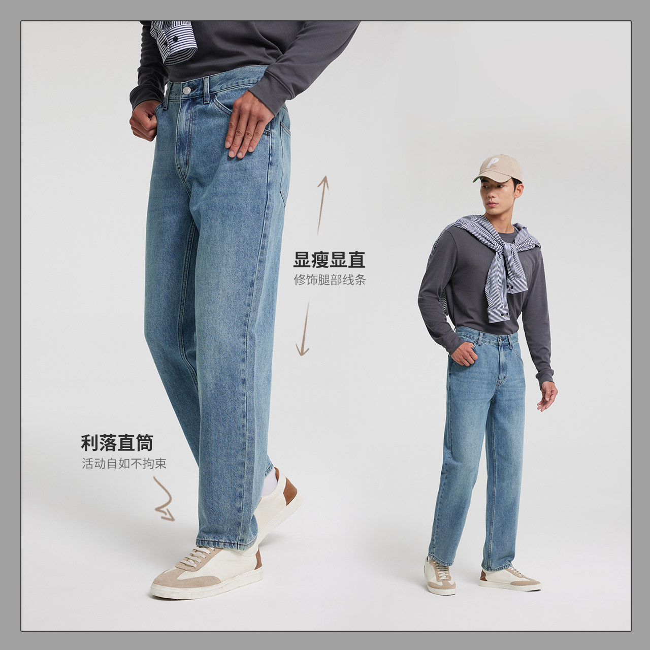 舒适直筒斜插袋潮流休闲通勤百搭裤 新款 男26春季 美特斯邦威牛仔裤