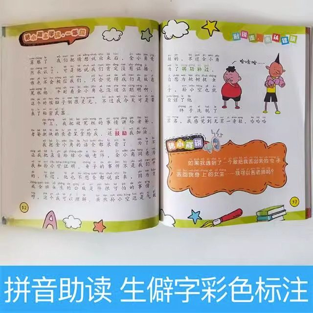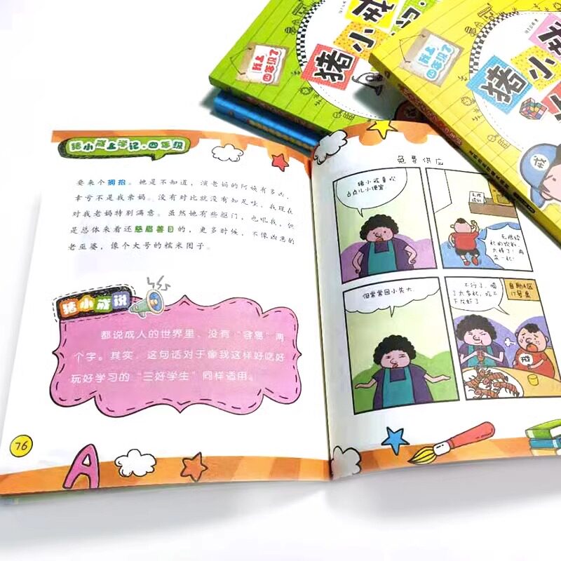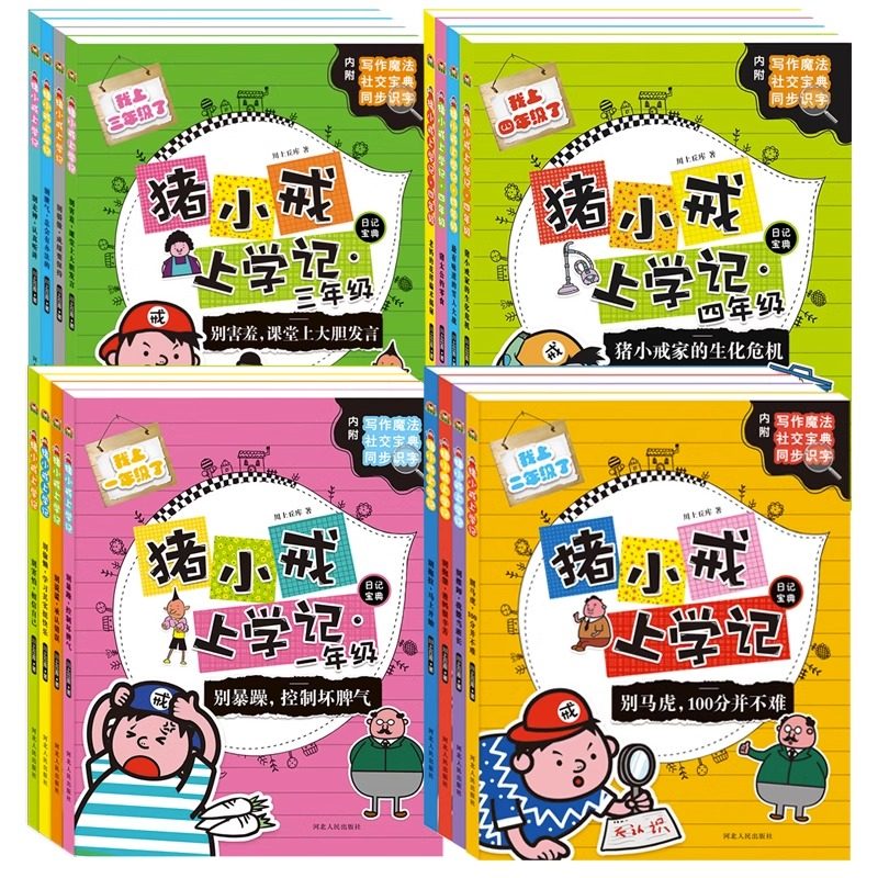 小学生课外阅读书励志日记宝典古诗词 一年级二年级三年级四年级全彩图注音版 益智漫画故事 猪小戒数学日记漫画成语 猪小戒上学记