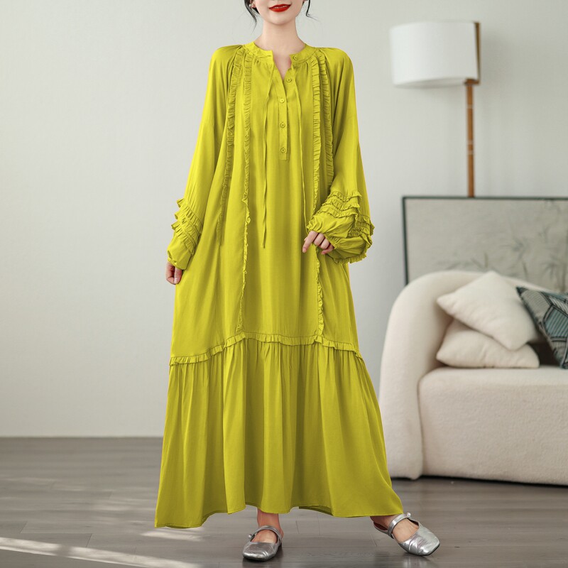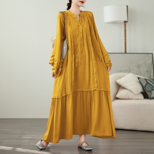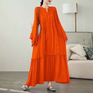 足尺寸棉质垂感好质量过膝长裙子胖mm宽松长袖 过膝连衣裙女 大码