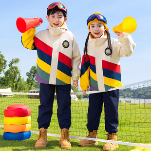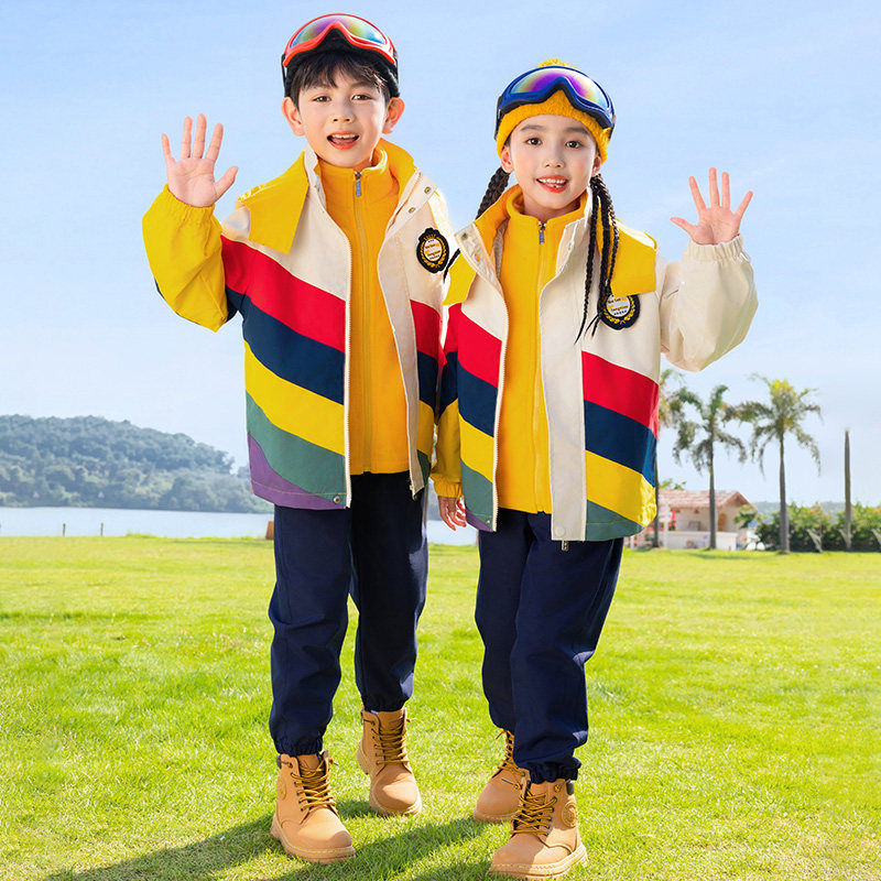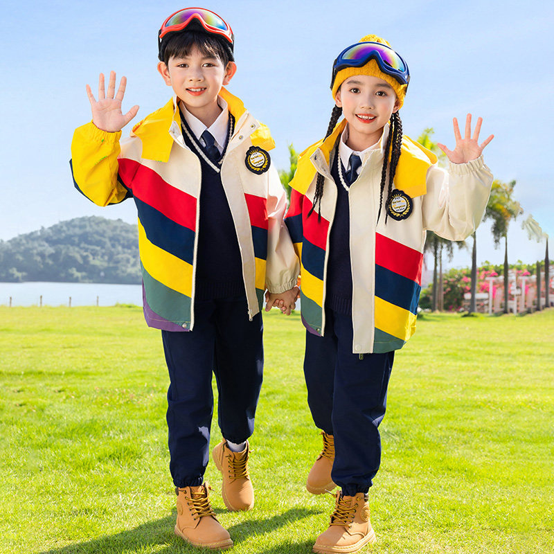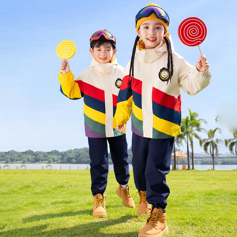 小学生校服冲锋衣三合一拼色套装 幼儿园园服班服秋冬儿童糖果彩虹
