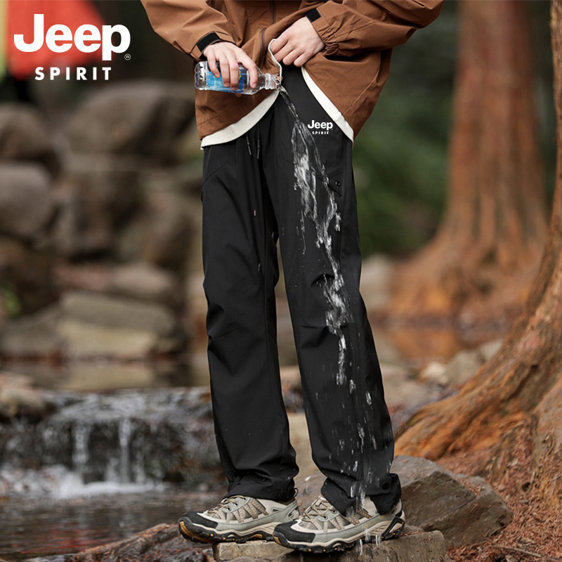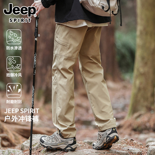 吉普软壳冲锋裤 男女直筒防水防风登山户外速干新型拉链机能休闲裤