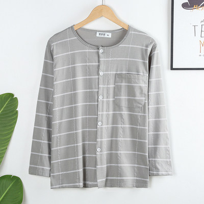 秋装 上衣睡衣男春夏爷爷休闲家居服大码 开衫 中老年男装 长袖 爸爸装