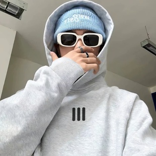 秋冬 复古侧边条纹宽松休闲情侣加绒帽衫 YKYB黄子韬 潮流卫衣美式