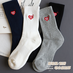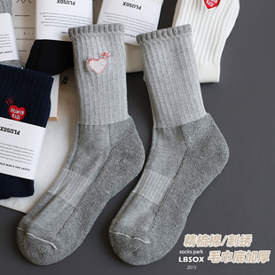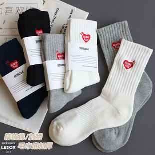 袜子男女秋冬纯棉中筒袜爱心毛巾底加厚保暖欧美ins潮牌运动长袜