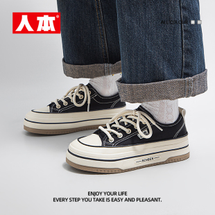 女款 软底不累脚内增高布鞋 2026新款 黑色板鞋 女 春季 人本厚底帆布鞋