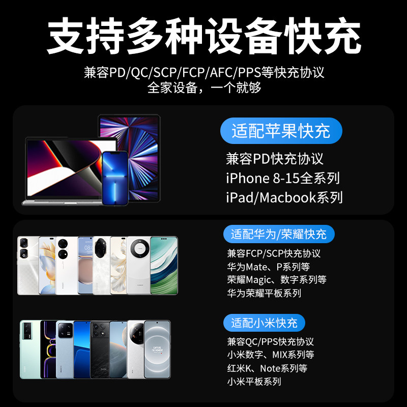 官方正品 适用于苹果安卓手机通用USB插头耳机接口三 120W超级快充多口充电器三合一数据线一拖三多头车载套装
