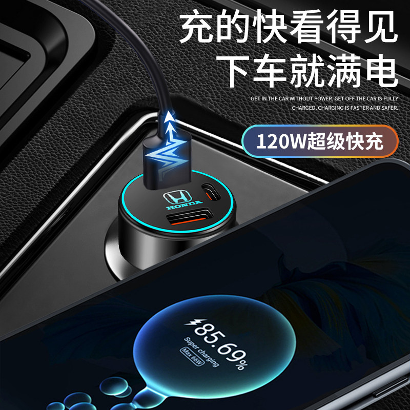 车载充电器120w超级快充汽车点烟器转换插头一拖二快速插座新款