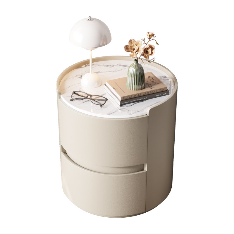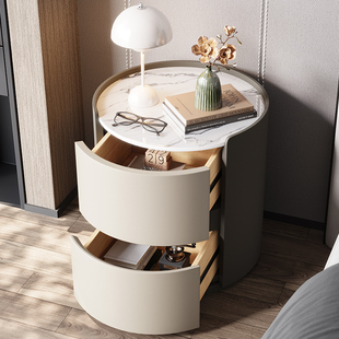 岩板实木床头柜家用小户型迷你窄柜简约现代皮革床边柜轻奢收纳柜