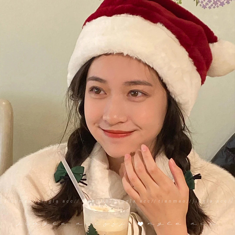毛绒圣诞帽可爱帽子红色圣诞节装 扮饰品派对小礼物配饰 饰男节日装