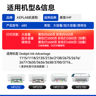 2678 5088 打印机可加墨连供xxl原装 3638 品质 2677 3838 3778 适用惠普HP680xl墨盒黑色彩色3636 2676