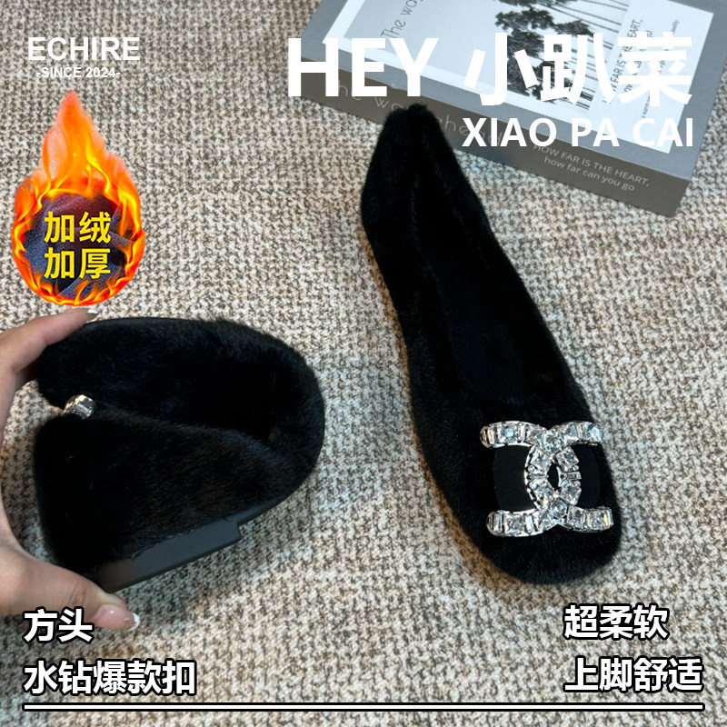 毛毛浅口单鞋 初雪印记 女保暖外穿甜美可调节芭蕾舞鞋 王小毒