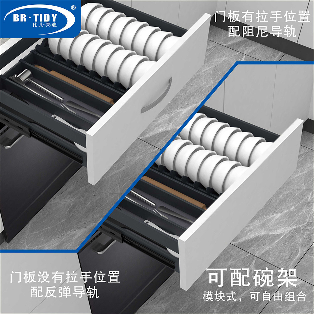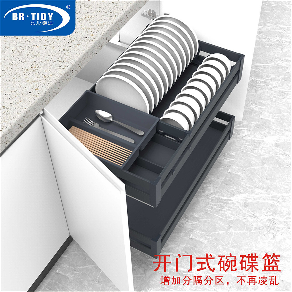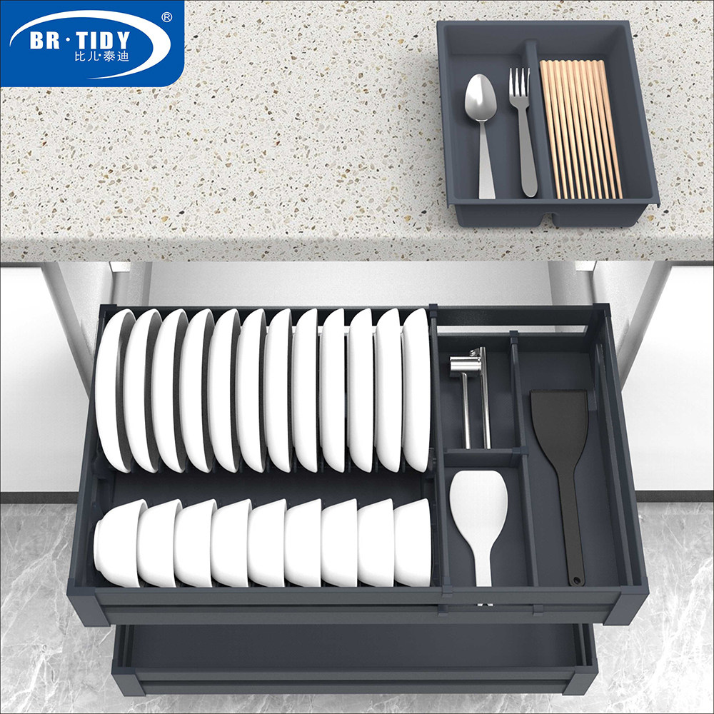 悍高橱柜拉篮铝合金双层抽屉式 碗篮内置碗架304不锈钢收纳碗碟篮