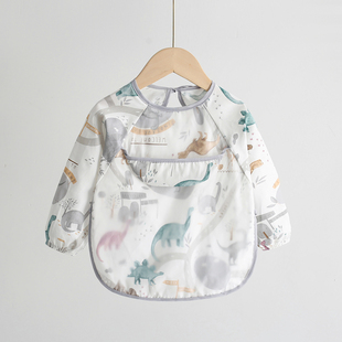 丹麦棉婴儿围兜宝宝吃饭罩衣儿童四季 反穿衣 防水饭兜防油围嘴长袖