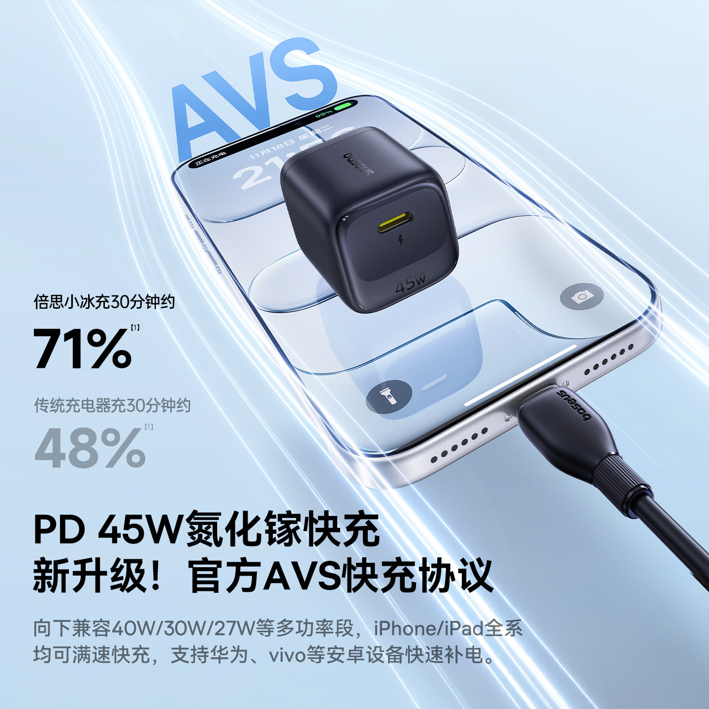 40W氮化镓插头Type 倍思小冰充适用苹果充电头iPhone17Promax手机充电器快充头45W C数据线 iPhone17专属