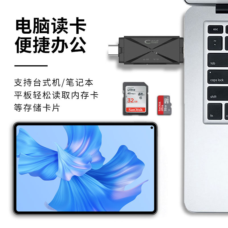 USB三合一接口适用苹果手机电脑通用外置读取器 华顾读卡器相机sd卡tf多功能ccd高速读取内存卡安卓 Type
