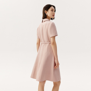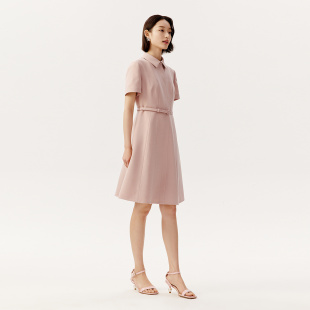 羊毛气质轻礼服正肩收腰粉色中长裙 新款 VGRASS女装 连衣裙春夏季