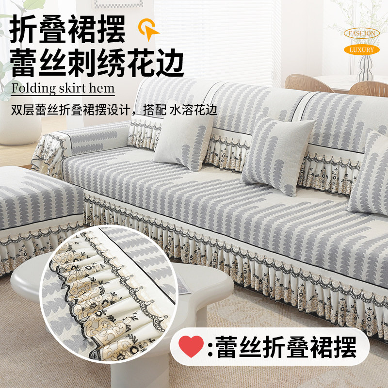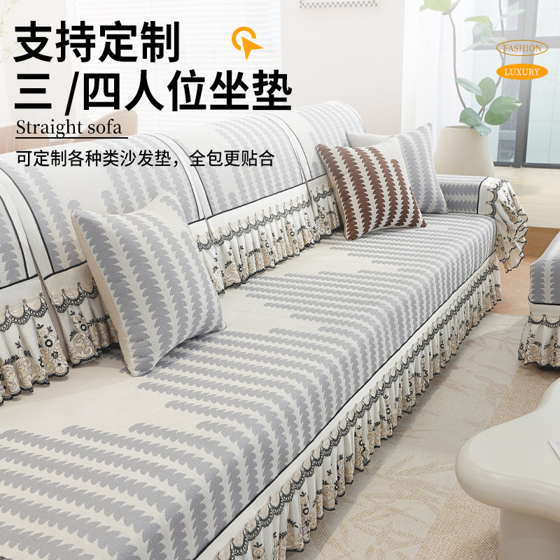 美式 通用防滑盖布高级感欧式 雪尼尔坐垫沙发套 轻奢沙发垫四季 法式