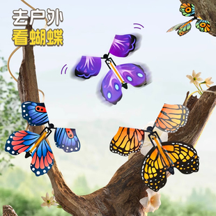 新款 蝴蝶喷花礼盒飞去来器亲子互动竹蜻蜓礼物 儿童户外玩具会飞