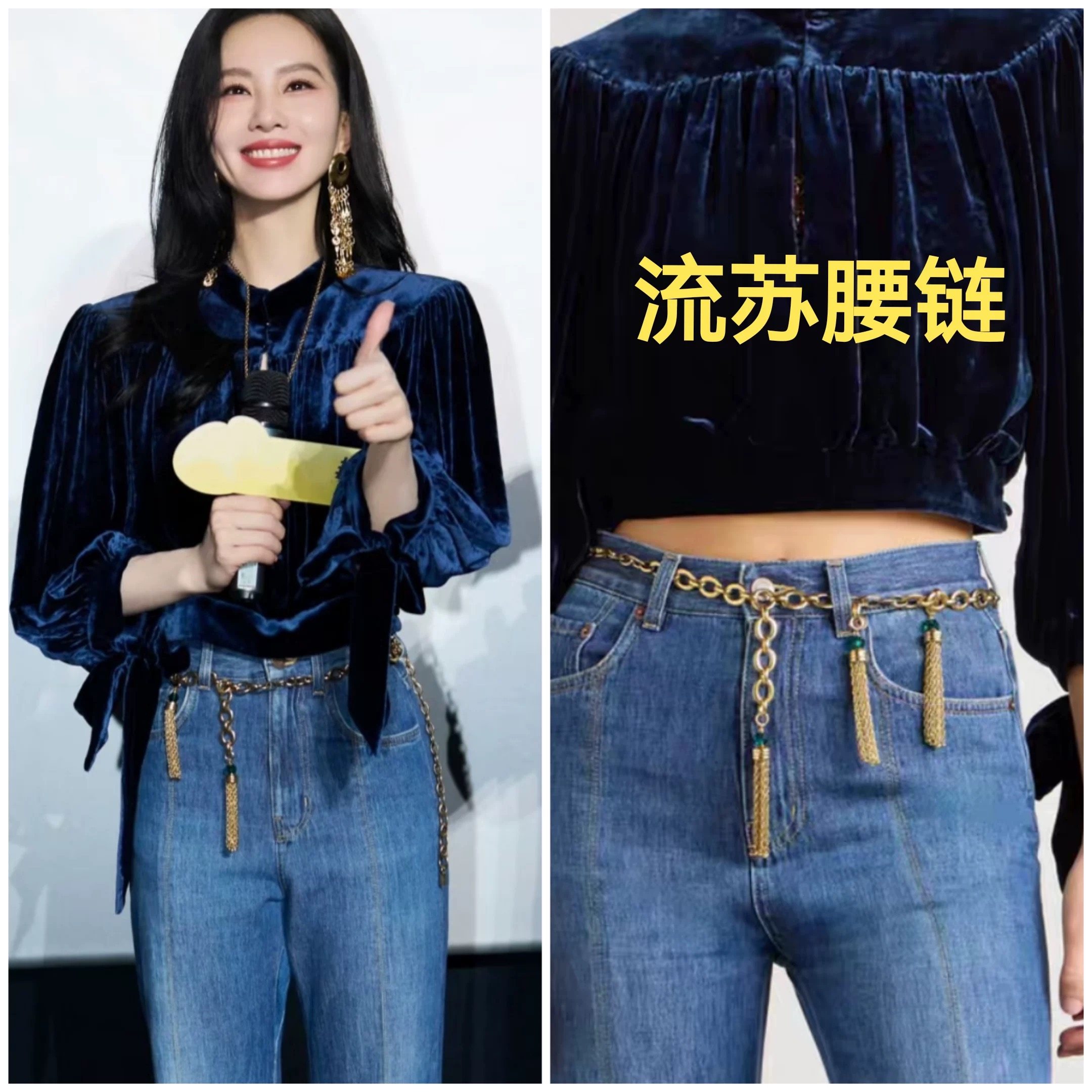 时髦链条流苏腰带腰绳皮带 金属腰链女2025春夏新款 明星同款 牛仔裤
