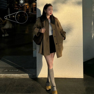 休闲复古工装 小个子中长款 新款 茉茉西里卡其色风衣外套女2025春季