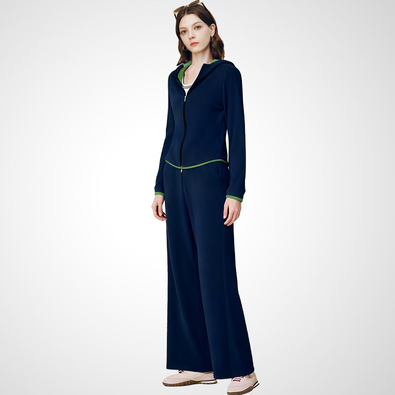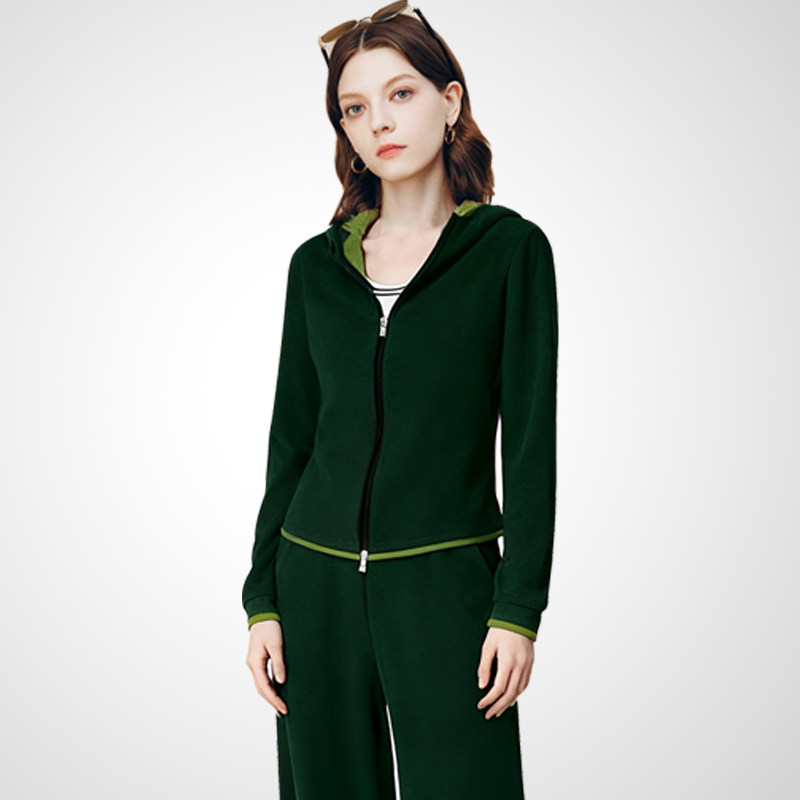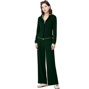 抽绳直筒休闲裤 UNRETRO 绿色运动拉链卫衣女 套装 两件套 首发时尚
