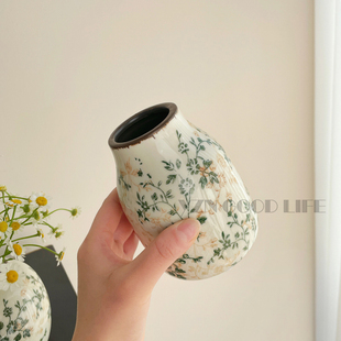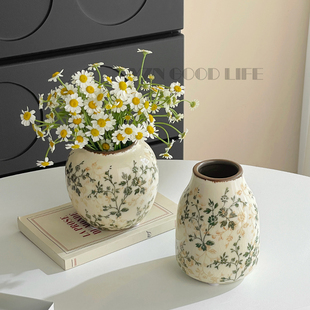 中古风艺术花瓶陶瓷摆件水养插花玫瑰客厅餐桌软装 饰品高级感网红