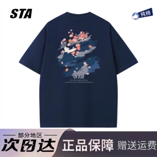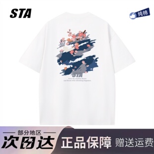 新款 男女夏季 重磅纯棉宽松情侣百搭T恤 潮牌涂鸦短袖 STA旗舰店美式