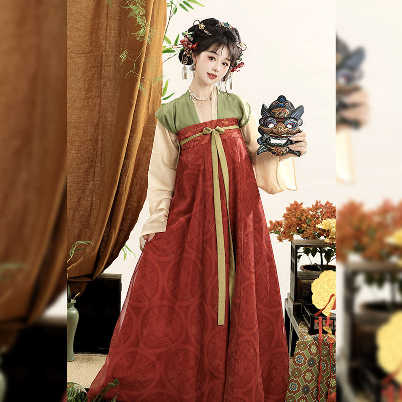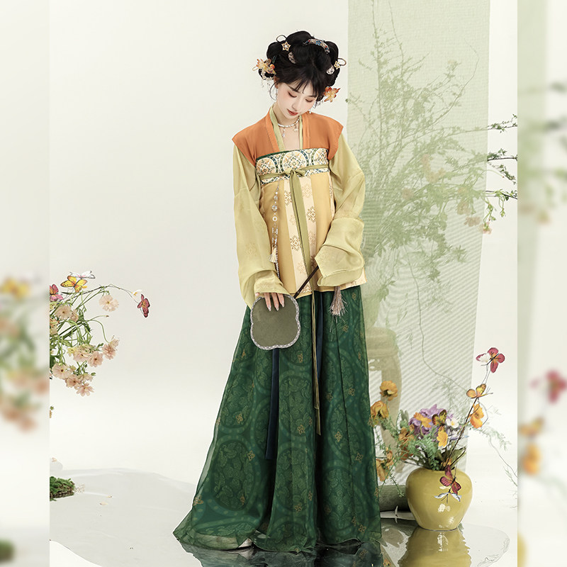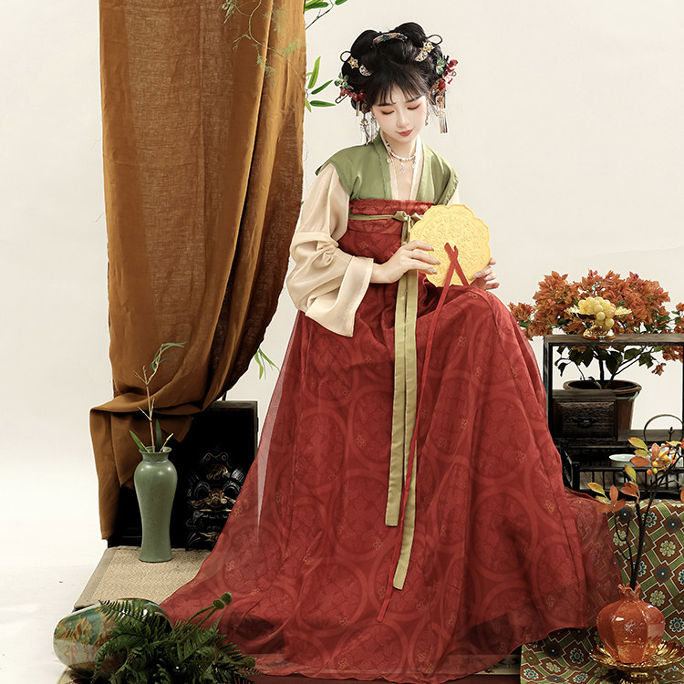 日常春夏款 织春集原创 齐胸破裙套装 唐制汉服复原对襟衫 小唐彩