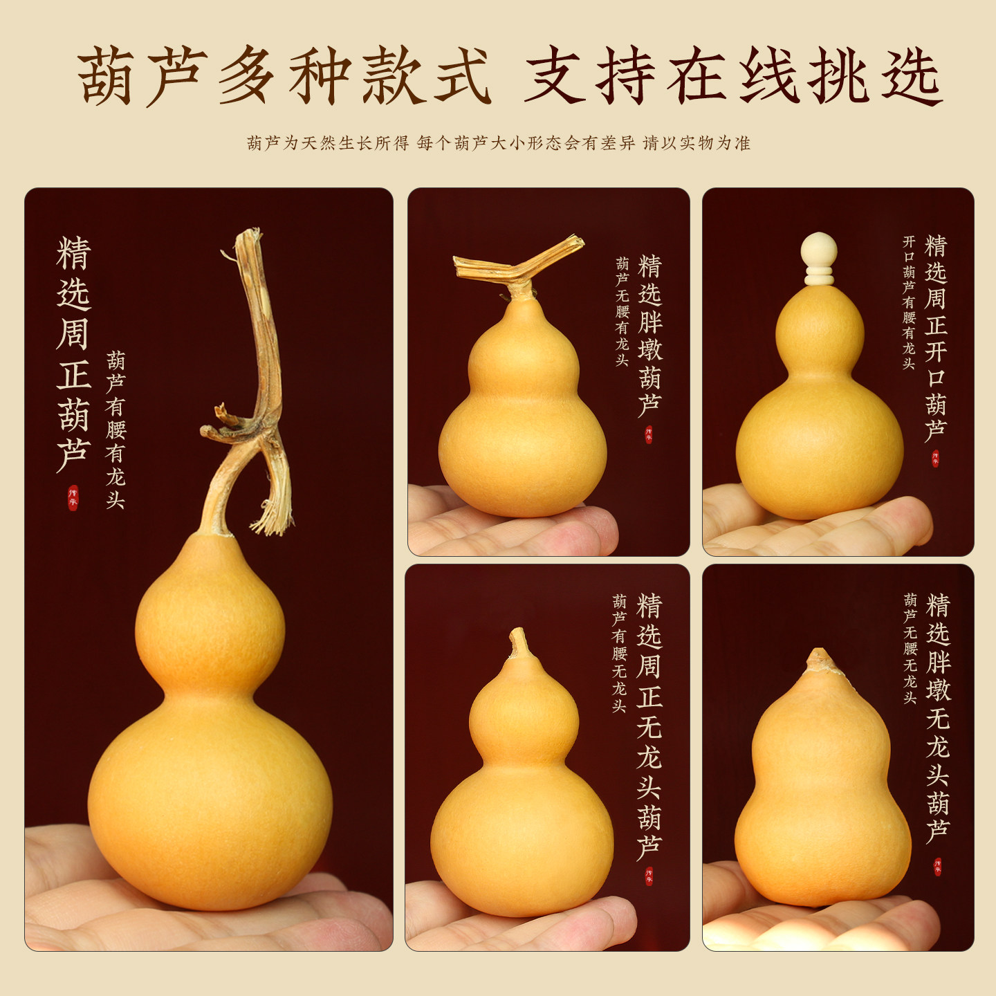 开口天然葫芦空心龙头带盖迷你特小号大小摆件挂件手把件厕所客厅