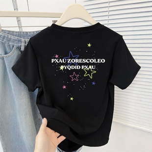 T恤女小众设计感韩系百搭正肩上衣 星星印花圆领短袖 夏季 2026新款