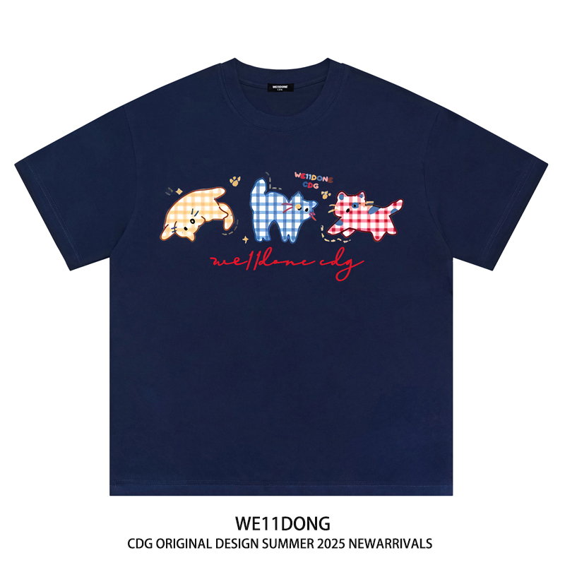 WE11DONE t恤 CDG小众潮牌猫咪卡通印花WELLDONE男女宽松纯棉短袖