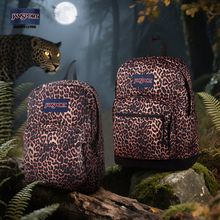JanSport25年新款 豹纹轻便通勤双肩包男女学生书包运动休闲电脑包