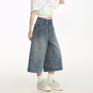 复古做旧水洗宽松休闲显瘦牛仔短裤 女美式 蓝色七分裤 NERESUM夏季