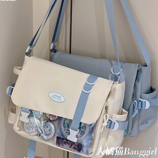 大橘猫学院风设计感百搭大容量邮差包透明吧唧单肩包斜挎娃包痛包