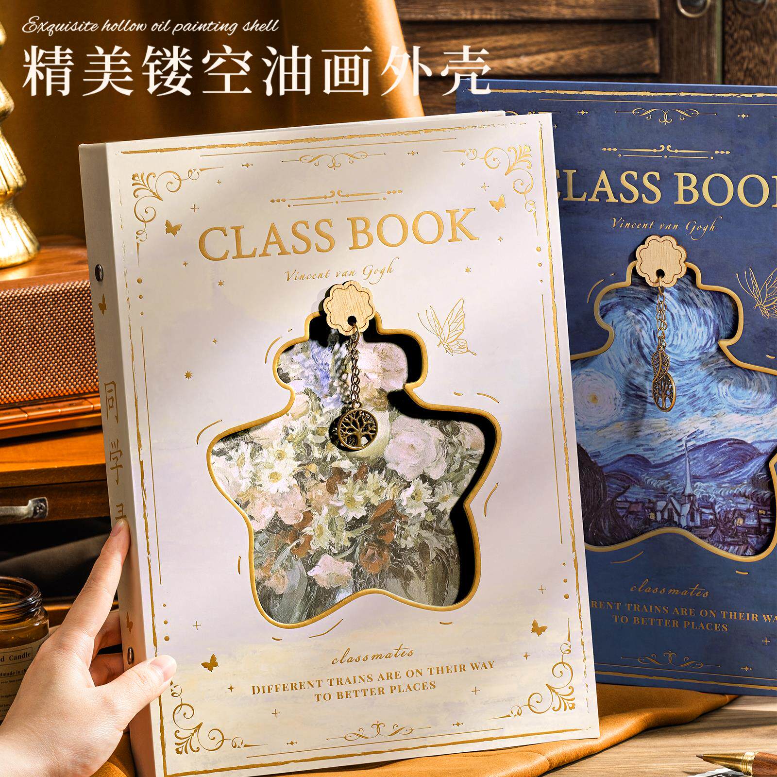 复古油画文艺同学录小学生六年级毕业成长纪念册2025新款 镂空活页本初中女生男孩高颜值通讯小众ins风不撞款