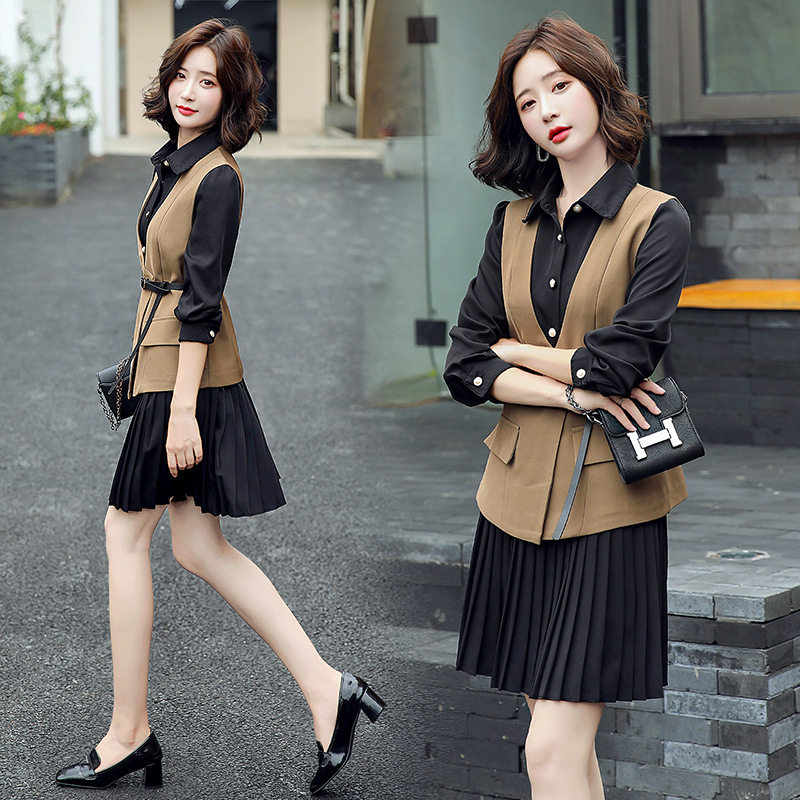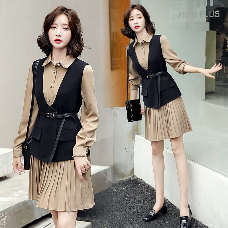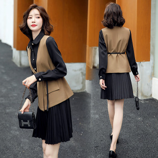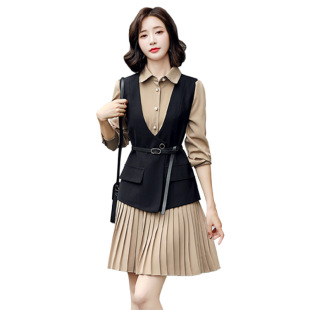 褶皱衬衫 时尚 裙子马甲两件套套裙女士 女装 2021早秋气质连衣裙新款