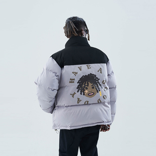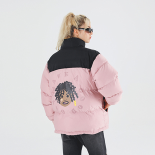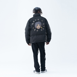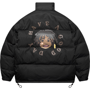 复古街头手绘卡通脏辫金牙小黑人发泡立领羽绒服 cruel harsh and