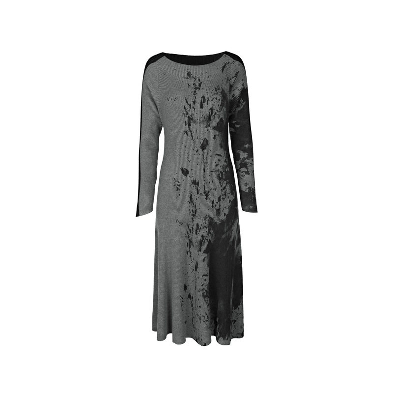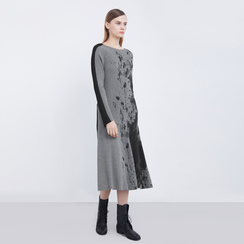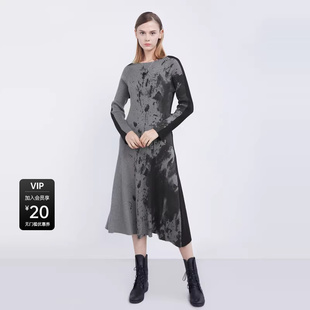 sdeer圣迪奥冬装 圆领水墨晕染针织拼接连衣裙女S21481216