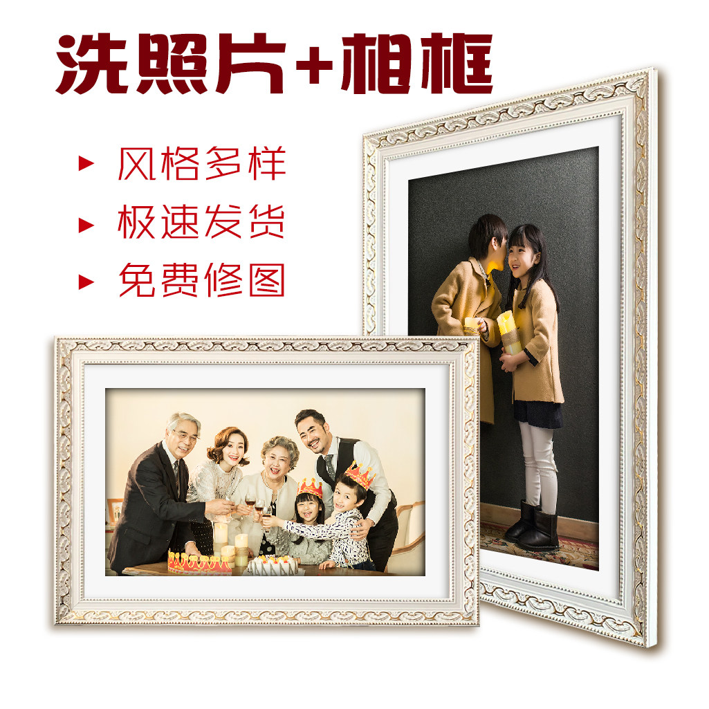 照片打印洗照片带框全家福相框挂墙婚纱照加框架合影放大尺寸裱框