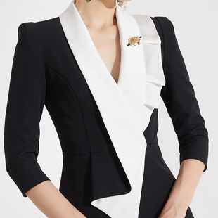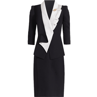 连衣裙西装 2025春夏新款 领无袖 荷叶边西装 裙 设计师高端小礼服晚装