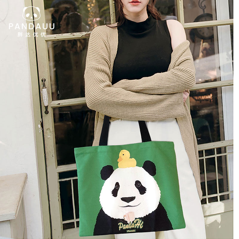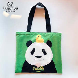 胖大海鸭 学生单肩包环保布包包 PANDAUU 原创大熊猫提袋卡通可爱