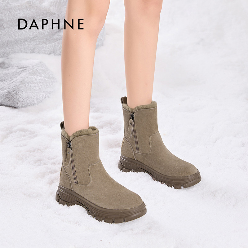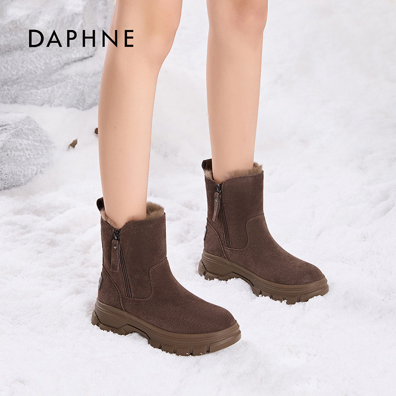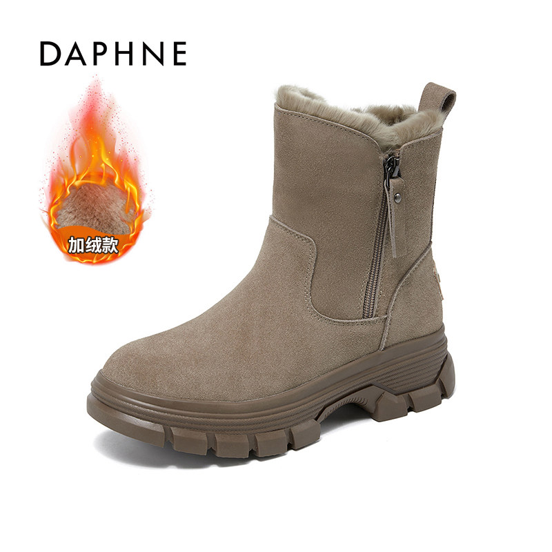 百搭绒面质感靴 2024加绒保暖加绒抗寒增高时尚 Daphne 达芙妮女鞋