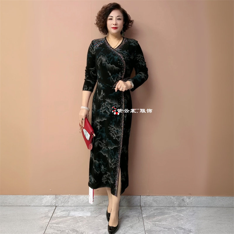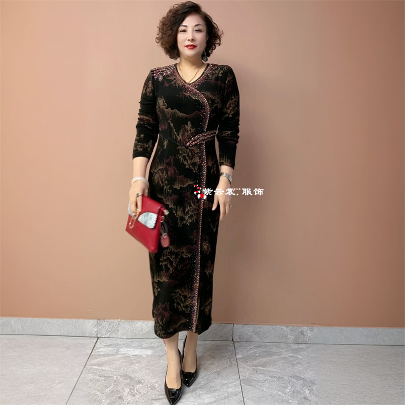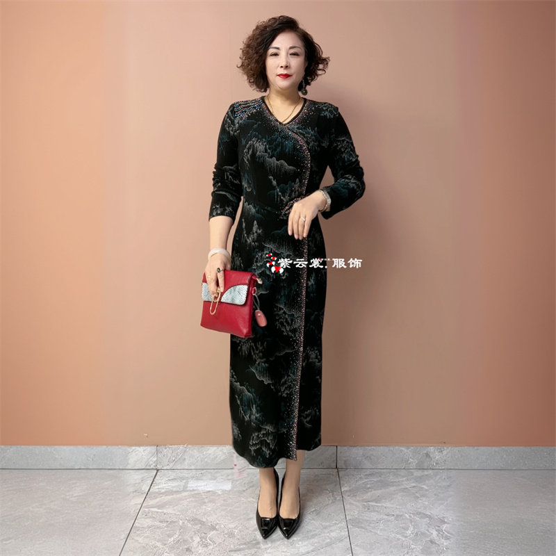 春秋高端气质年轻妈妈长袖 连衣裙 南韩丝弹力收腰显瘦过膝轻奢长款