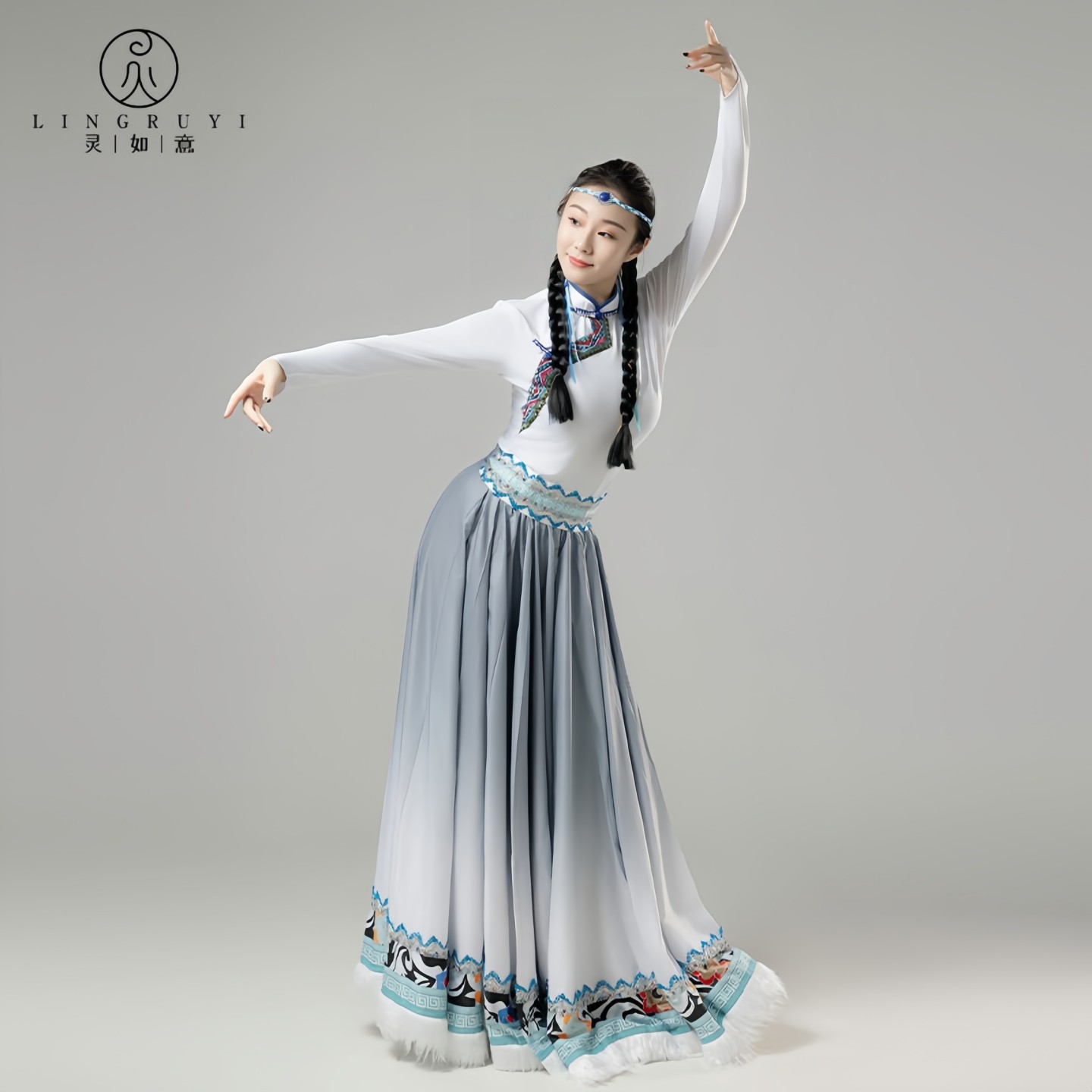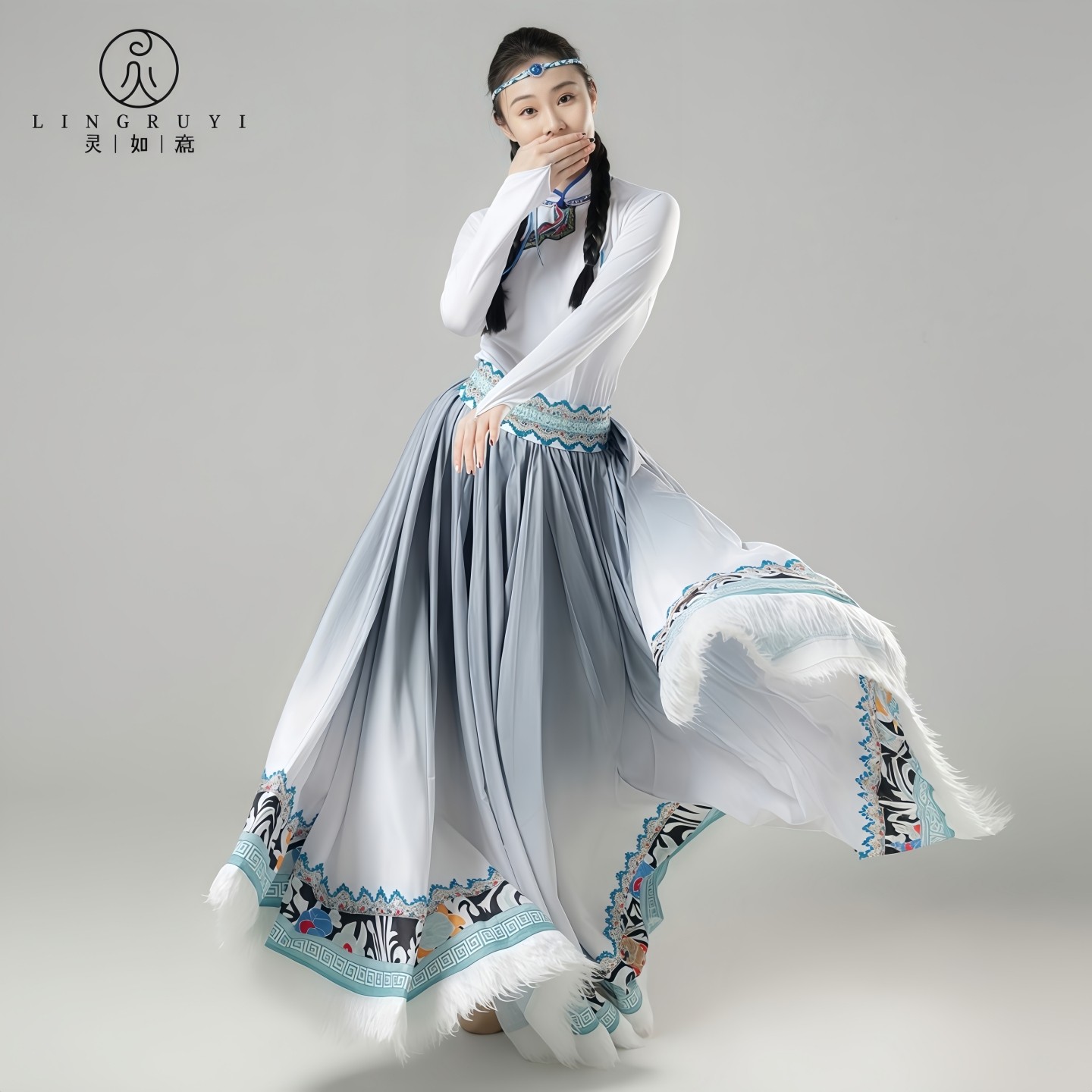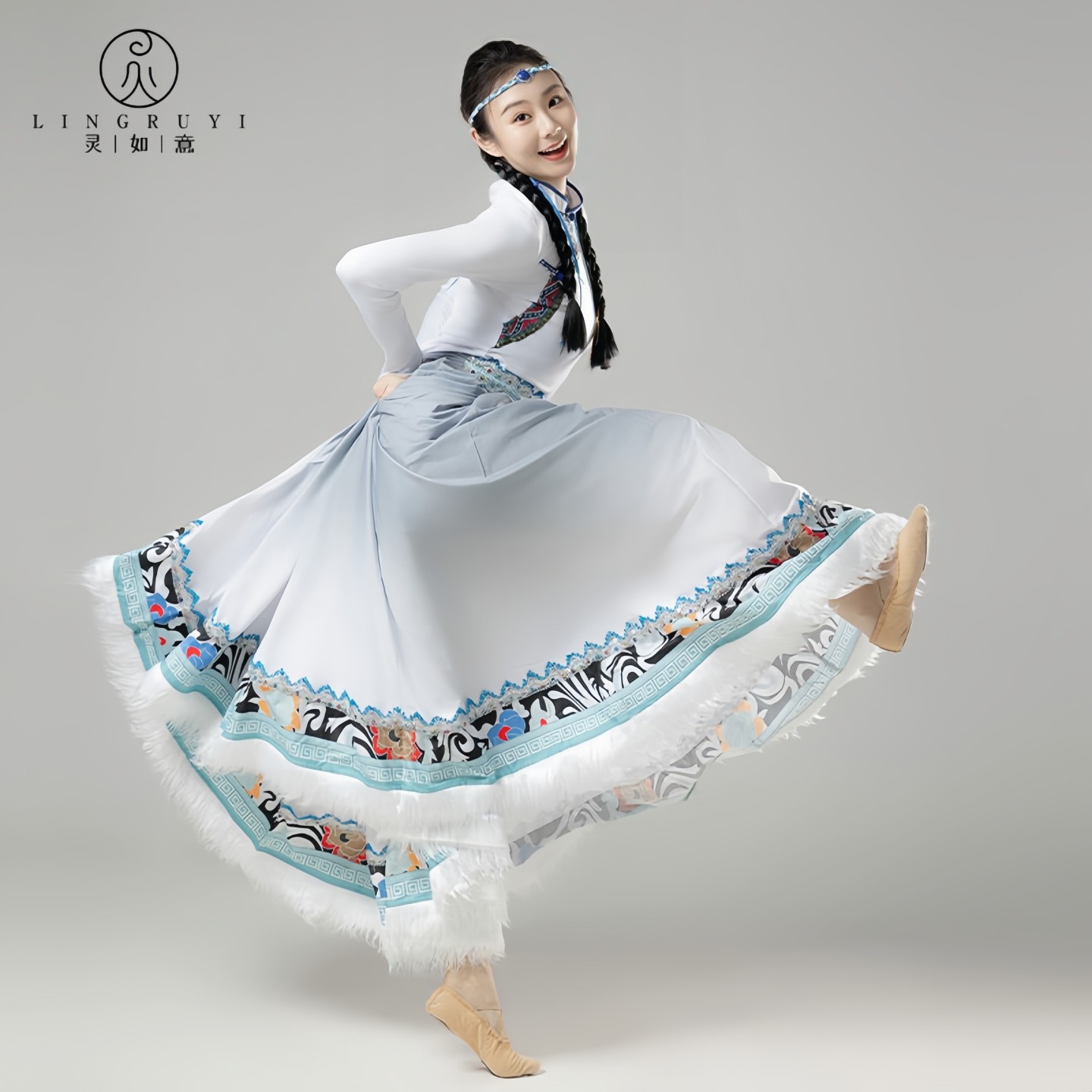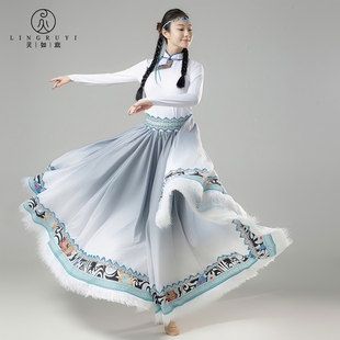 民族舞服装 藏族舞蹈服头饰艺考演出服成人大摆裙少数民族风练功服