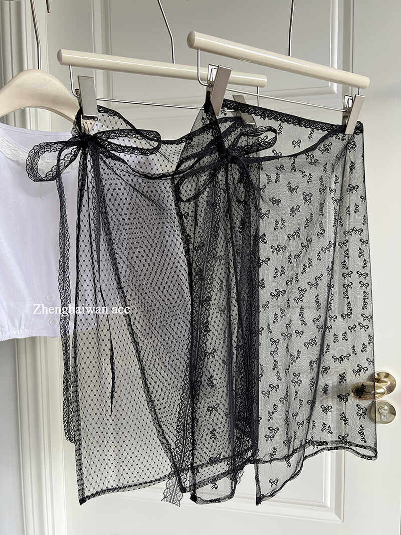 原创设计韩国蕾丝花边屁帘围裙女叠穿绑带半身裙百搭罩裙